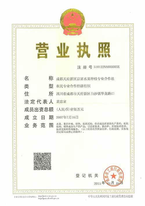 ? ? ? ? ? ? ? 單位名稱:成都天府新區(qū)宗富水果種植專業(yè)合作社